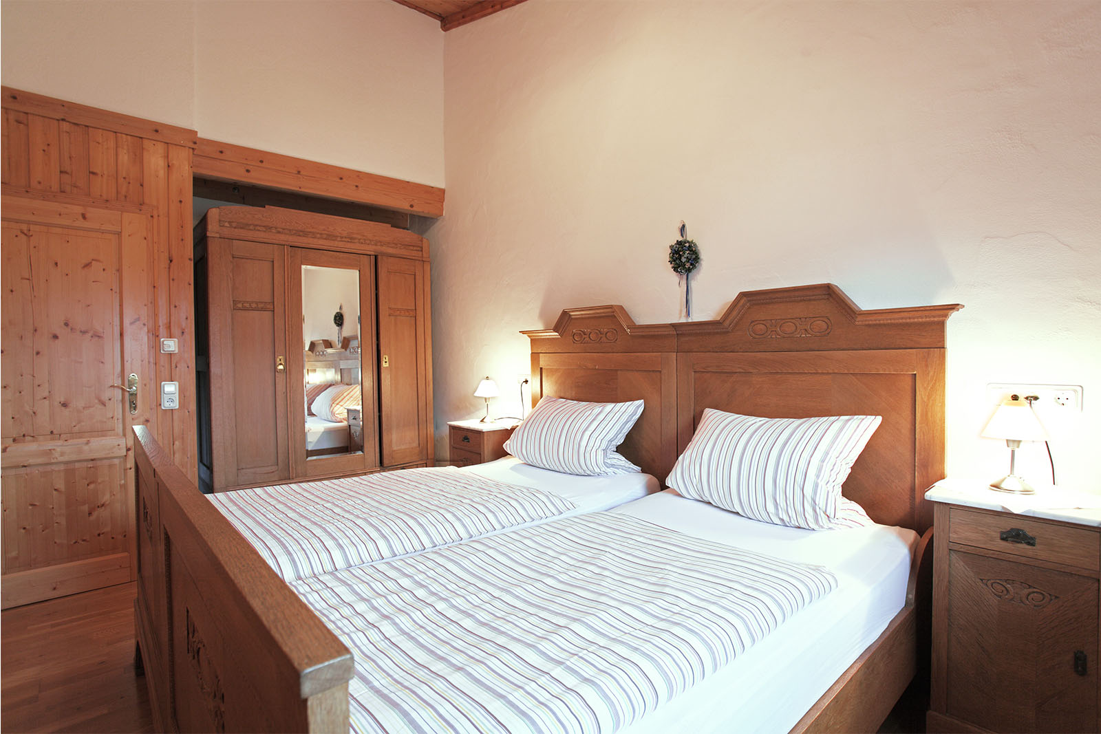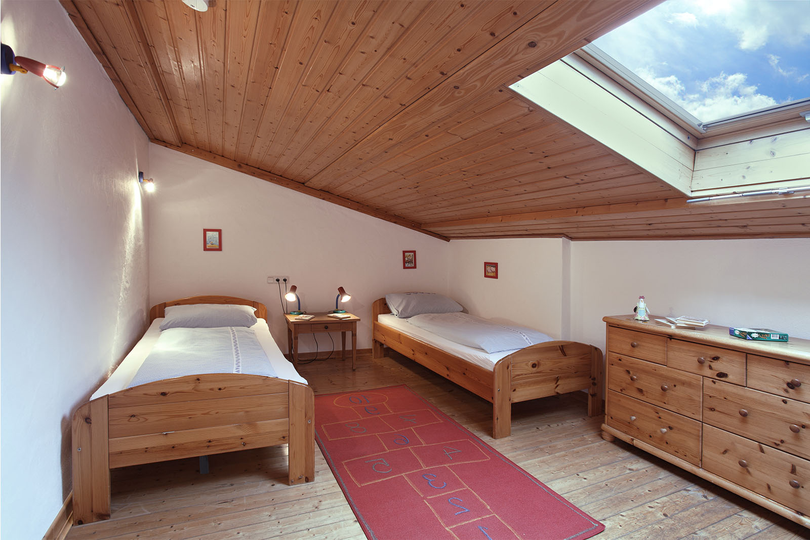 1.Etage: 1 Doppelzimmer (2 x 1,00m x 2,00m), 1 Zweibettzimmer (2 x 0,90m x 2,00m), Bad